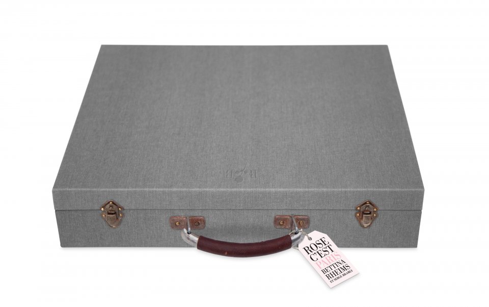 Fetishistically boxed up in a retro attaché case are souvenirs of this curious tale: a rose, a mask, an Eiffel Tower statuette (perhaps a murder weapon?), a booklet, a DVD, and of course the photo book itself. Invoke your inner detective: set the case before you, flip open the rusty latches, and devour the evidence...