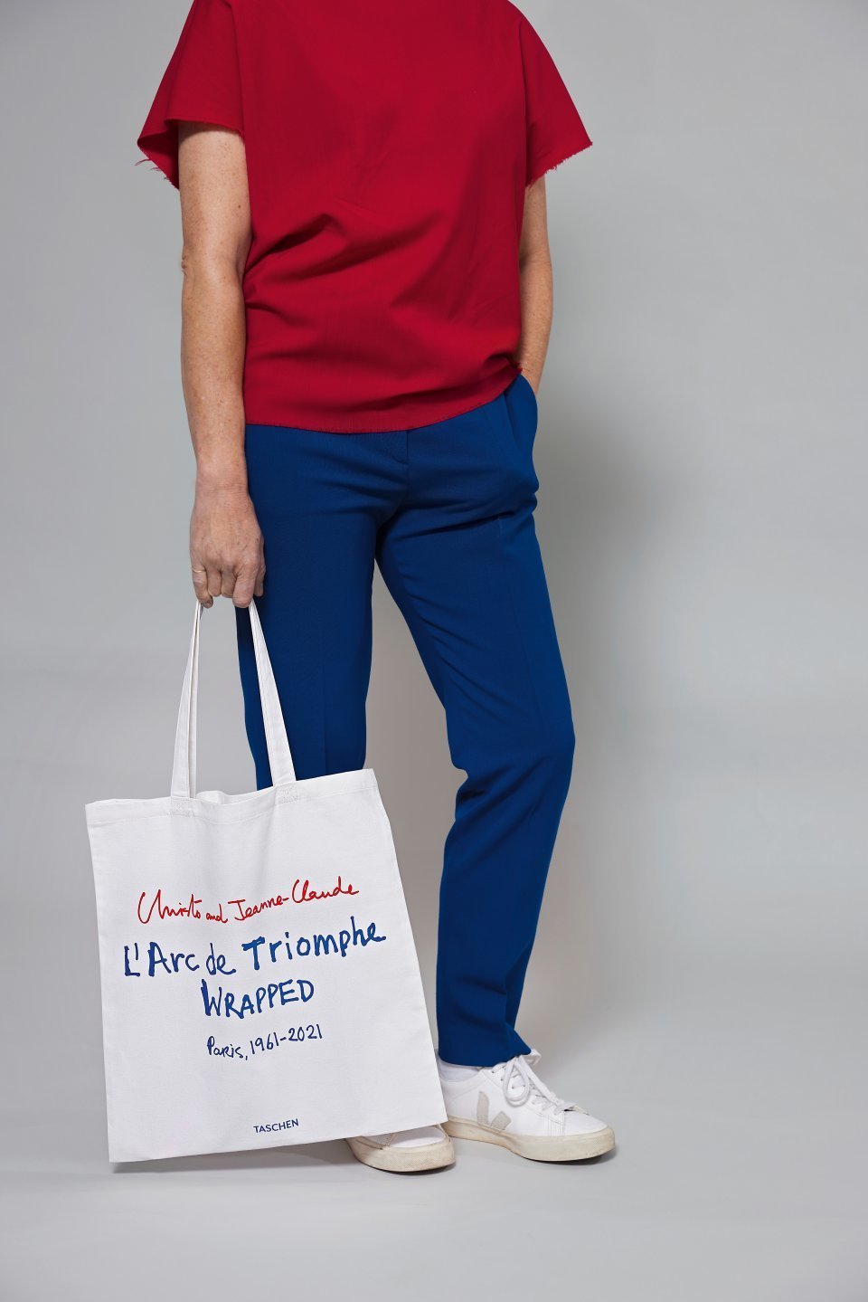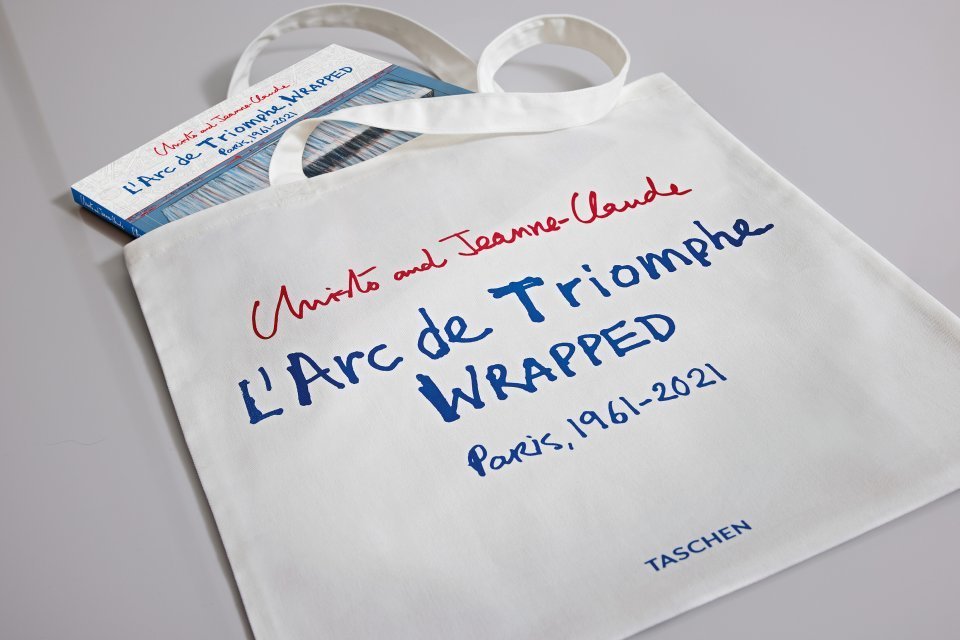 While stocks last: bag yourself this ultimate souvenir, made from 100% cotton. The white canvas bag, printed on both sides in the colors of the French flag, not only reminds you of Christo and Jeanne-Claude¡¯s posthumous masterpiece L'Arc de Triomphe, Wrapped – it also aids you with your own (smaller) acts of everyday wrapping.