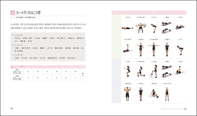 °Ç°ÇÑ ¸ö¸¸µé±â, ³¯¾ÀÇÑ º¸µð¶óÀÎ ¸¸µé±â, Á¶°¢ °°Àº ¸ÚÁø ¸ö¸¸µé±â µî ¸ðµç °æ¿ì¿¡ Àû¿ëÇÒ ¼ö ÀÖ´Â ÃÖ°íÀÇ ¿îµ¿ ³ëÇϿ찡 ¸ðµÎ °ø°³µÈ´Ù. ÀúÀÚ´Â ¸¹Àº »ç¶÷ÀÇ ¸öÀ» ¸¸µå´Â °úÁ¤¿¡¼ ÀÍÈù ¿îµ¿¹ý°ú ½ÄÀÌ¿ä¹ý Áß °¡Àå È¿°úÀûÀÎ °Í¸¸ ¾ö¼±Çؼ ¿ä¾àÇß´Ù. ¿Ü¸ð´Â Çö´ë»çȸ¿¡¼ Áß¿äÇÑ °æÀï·Â Áß ÇϳªÀ̰í, °Ç°ÇÑ ¸öÀº ÀÚ½ÅÀÇ ²ÞÀ» ÀÌ·ê ¼ö ÀÖ°Ô ÇÏ´Â °¡Àå ±âº»ÀûÀÎ ¹ÙÅÁÀÌ´Ù. 8ÁÖ! ´Ü 56Àϰ£ÀÇ ³î¶ó¿î °æÇèÀ» ÅëÇØ¼ ³²³à³ë¼Ò ºÒ¹®ÇÏ°í ¾ðÁ¦ ¾îµð¼µç ¹Ù·Î ½ÃÀÛÇÒ ¼ö ÀÖ´Â ¿îµ¿¹ýÀ» ³À̵µ¿¡ µû¶ó ÇÁ·Î±×·¥È ½ÃÄ×´Ù.
