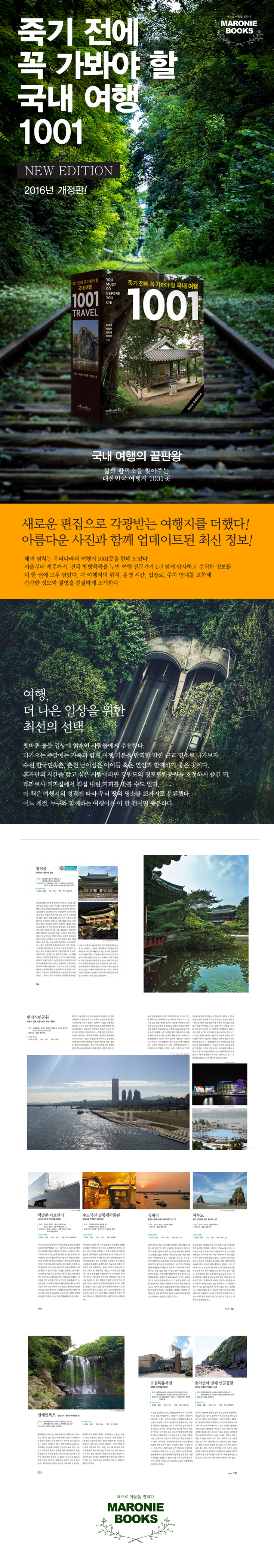 ¡ºÁ×±â Àü¿¡ ²À °¡ºÁ¾ß ÇÒ ±¹³» ¿©Çà 1001:NEW EDITION¡»Àº »õ·Î¿î ÆíÁýÀ» ÅëÇØ ¿©ÇàÁö¸¦ Ãß°¡Çϰí ÃÖ½ÅÀÇ ÀڷḦ ³Ö¾ú´Ù. ¶ÇÇÑ ±âÁ¸ÀÇ »çÁø°ú ´Ù¸¥ »õ·Î¿î »çÁøÀ¸·Î ½Å¼±ÇÔÀ» ºÒ¾î³Ö¾úÀ¸¸ç, À§Ä¡ÀÇ Á¤È®¼ºÀ» À§ÇØ ¿©ÇàÁöÀÇ ±¸ÁÖ¼Ò¿Í ½ÅÁÖ¼Ò¸¦ ¸ðµÎ Ç¥±âÇÏ¿´´Ù.