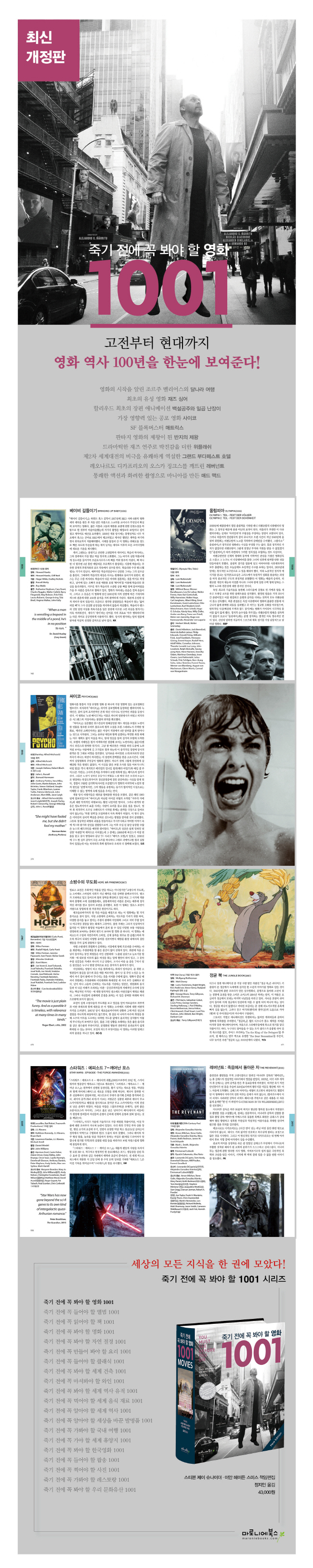 ¿µÈ ¿ª»ç 100³â, ½Ã´ë¿Í À帣¸¦ ÃÊ¿ùÇØ ¡®¹Ýµå½Ã ºÁ¾ß Çϴ¡¯ ¿µÈ¸¦ ¼±º°ÇÑ´Ù´Â °ÍÀº ½¬¿î ÀÏÀÌ ¾Æ´Ï´Ù. ¡ºÁ×±â Àü¿¡ ²À ºÁ¾ß ÇÒ ¿µÈ 1001¡»Àº ±×¸¸Å °ú°¨ÇÑ ½Ãµµ¿Í ¸ðÇè ³¡¿¡ ź»ýÇÑ ¿ªÀÛÀÌ´Ù. ¡®À§´ëÇÑ¡¯, ¡®ÃÖ°íÀÇ¡¯, ¡®°¡Àå Àαâ Àִ¡¯, ¡®°¡Àå ¶Ù¾î³¡¯ µîµî ¿©·¯ ¼ö½Ä¾î¸¦ µ¿¹ÝÇÏ¸é¼ ¿¹¼úÀû ¼öÁذú ´ëÁßÀû ÆòÆÇÀ» °ËÁõ¹ÞÀº ¿ªÀÛµéÀ» °£Ãß·Á 1001Á¡À» ¾ö¼±Çß´Ù.