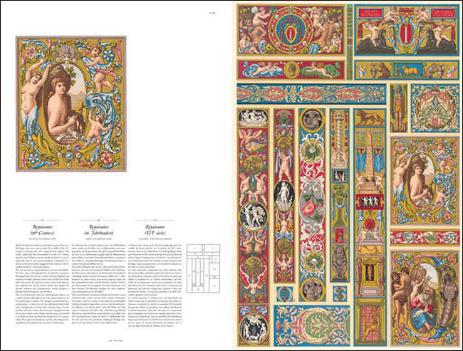 ¿ª»ç»ó °¡Àå ¿ì¾ÆÇÏ°í ¾Æ¸§´Ù¿î ÆÐÅϵé°ú Àå½ÄÀûÀÎ µðÀÚÀÎÀ» ¸ðµÎ ¸ð¾Æ ÀÌ Ã¥ ÇÑ ±Ç¿¡ ´ã¾Ò´Ù. ¾È¿¡ ¼ö·ÏµÈ À̹ÌÁöµéÀº ¸ðµÎ °íÇØ»óµµ ÆÄÀÏ·Î ´Ù¿î·Îµå °¡´ÉÇÏ´Ù. ÀÌ Ã¥Àº 19¼¼±âÀÇ Àå½Ä Ä÷º¼ÇÀ» ¸ðµç µÎ °³ÀÇ °Å´ëÇÑ ¹é°ú»çÀü½Ä Ä÷º¼Ç, RacinetÀÇ L'Ornement polychrome Volumes I and II (1875-1888)¿Í Dupont-AubervilleÀÇ L'Ornement des tissus(1877)À¸·Î ±¸¼ºµÇ¾î ÀÖ´Ù.