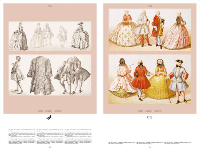 1876³â°ú 1888³â »çÀÌ¿¡ ÇÁ¶û½º¿¡¼ Ãâ°£µÈ ¿À±Í½ºÆ® ¶ó½Ã³×(Augueste Racinet)ÀÇ ¡°¿ª»çÀûÀÎ º¹½Ä(Le Costume historique)¡±´Â ¼¼»ó¿¡ ³ª¿Â Ã¥µé Áß °¡Àå ±¤¹üÀ§Çϰí ÁöÀûÀÎ ¿¬±¸ °á°ú¹°ÀÌ´Ù. °í´ëºÎÅÍ 19¼¼±â ¸»¿¡ À̸£±â±îÁö Àü ¼¼°èÀÇ º¹½Ä°ú ÀÇ»ó, ½ºÅ¸ÀÏ¿¡ °üÇÑ ¿ª»ç¸¦ ´ãÀº ÀÌ À§´ëÇÑ Ã¥Àº 6±ÇÀ¸·Î ±¸¼ºµÇ¾î ÀÖÀ¸¸ç, 1888³â °ÅÀÇ 500ÆÇÀÌ ÀμâµÇ¾ú´Ù. ÀÌ Ã¥Àº ¿À´Ã³¯¿¡µµ ÀǺ¹¿¡ °üÇÑ ÀÚ¼¼ÇÏ°í µ¶Ã¢ÀûÀΠåÀ¸·Î ³²¾Æ ÀÖ´Ù. ¶ó½Å´ÀÀÇ ÁÖÁ¦º° ¹× ¹®Èº° ºÐ·ù´Â ¶ó½Å´ÀÀÇ ¼³¸í°ú À§Æ® ÀÖ´Â ±ÛÀ» ¹ßÃéÇÑ Å¸¼ÏÀÇ Àç ÀμâÆÇ¿¡µµ ±×´ë·Î º¸Á¸µÇ¾î ÀÖ´Ù. ³Ê¹«³ª ¾Æ¸§´ä°í ÀÚ¼¼Çϸç Á¤±³ÇÑ Ä÷¯ ±×¸²À» Àß º¸¸é, ¿¾ ¿¡½ºÅõ¸®¾ÆÀÎÀÇ ÀǺ¹¿¡¼ºÎÅÍ ÀüÅëÀûÀÎ ¿¡½ºÅ°¸ð½Ä ÀǺ¹¿¡ À̸£±â±îÁö ¸ðµç °ÍµéÀÌ 19¼¼±â ÇÁ¶û½º ¿©¼ºÀÇ ÀÇ»ó¿¡ ¾î¶»°Ô ¹Ý¿µÀÌ µÇ¾î ÀÖ´ÂÁö¸¦ ¾Ë°Ô µÉ °ÍÀÌ´Ù. °í´ëºÎÅÍ ÀÚ½ÅÀÌ »ì´ø ½Ã±â±îÁö Àü ¼¼°è¸¦ ¹«´ë·Î ÇÑ ¶ó½Å´ÀÀÇ ¿¬±¸´Â Áß¼¼ºÎÅÍ 1880³â´ë±îÁöÀÇ À¯·´ÀÇ ÀÇ»ó¿¡ ÁßÁ¡À» µÎ°í ÀÖÀ¸¸ç, ÀÌ ÁÖÁ¦¿¡ ´ëÇØ ƯÈ÷³ª ¿Á¤ÀûÀ̰í ÀÚ¼¼ÇÏ°Ô ´Ù·ç°í ÀÖ´Ù. ÀǺ¹ÀÇ ¿ª»ç´Â Çлýµé°ú µðÀÚÀ̳Ê, ¾ÆÆ¼½ºÆ®, ÀÏ·¯½ºÆ®·¹ÀÌÅÍ, ¿ª»ç°¡µé¿¡°Ô Àý´ëÀûÀ¸·Î ¹«ÇÑÇÑ °¡Ä¡¸¦ Áö´Ñ ÂüÁ¶ ÀÚ·áÀ̸ç, ÀÇ»ó°ú ½ºÅ¸ÀÏ¿¡ °ü½ÉÀÌ ¸¹Àº ´©±¸¿¡°Ô³ª Àç¹ÌÀÖ°í ¿µ°¨ÀÌ ³ÑÄ¡´Â Ã¥À̶ó ÇÒ ¼ö ÀÖ´Ù.