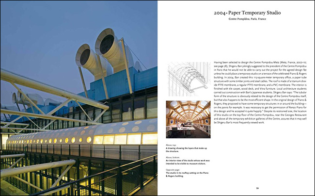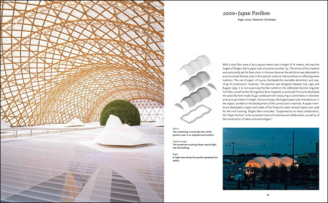 ±×´Â ±¸Á¶»ó ¿ä¼Ò·Î½á Á¾À̳ª ÆÇÁö¸¦ ÀÌ¿ëÇØ »õ·Î¿î Àǹ̸¦ ´ã¾Æ µðÀÚÀÎÀ» ÇÑ´Ù. ±×¿¡ ´ëÇØ, ¡°Á¾ÀÌ °ÇÃࡱÀ̶ó´Â »õ·Î¿î ¿ë¾î¸¦ ¸¸µé±âµµ Çß´Ù. ±×ÀÇ ÁÖ¿äÇÑ ¾÷Àû¿¡´Â ÀϺ» ¾ß¸¶³ªÄ«È£ÀÇ °¡±¸ ÇϿ콺, µµÄìÀÇ Ä¿Æ° º® ÇϿ콺, °¡¿Í°í¿¡ÀÇ ³×ÀÌ۵å ÇϿ콺, 2000³â Çϳë¹ö ¿¢½ºÆ÷¿¡¼ÀÇ ÀçÆÐ´Ï½º ÆÄºô¸®¿Â, À̵¿½Ä ³ë¸¶µñ ¹Ú¹°°ü, ±×¸®°í ÃÖ±ÙÀÇ °¡Àå ¶Ù¾î³ ¸íÀÛÀÎ ÇÁ¶û½ºÀÇ ÆþÇǵΠ¸ÞÃ÷ ¼¾ÅͰ¡ Æ÷ÇԵȴÙ.