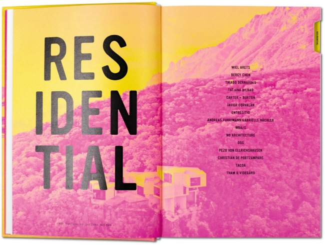 ºÐ¾ß¸¦ ±¸º°Çϱâ À§ÇØ, Residential, Commercial and Public, Culture and Religion, Education and Research, ±×¸®°í Leisure buildingsÀÇ ÁÖÁ¦º° ¼½¼ÇÀ¸·Î ³ª´µ¾î, Çõ½Å, ÀýÃæ°ú º¯ÈÇÏ´Â ¼¼°è¿¡ ¼øÀÀÇÑ Çö´ë °ÇÃàÀ» ¼Ò°³ÇÑ´Ù. ¡°½ºÅ¸ °ÇÃà°¡¡±¸¦ ¼Ò°³ÇÒ »Ó¸¸ ¾Æ´Ï¶ó Tatiana Bilbao (Mexico), Sou Fujimoto (Japan), ±×¸®°í the young team from Chile, Pezo von Ellrichshausen¿Í °°Àº ¶°¿À¸£´Â °ÇÃà°¡µéµµ ¼Ò°³ÇÑ´Ù.
