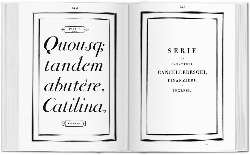 Official printer for the Duke of Parma, Giambattista Bodoni (1740–1813) declared that well-designed type derived its beauty from four principles: uniformity of design, sharpness and neatness, good taste, and charm. In his Manuale tipografico, published posthumously in 1818, he distilled these principles into a comprehensive catalog of type and set the standard for printing the alphabet thereafter.