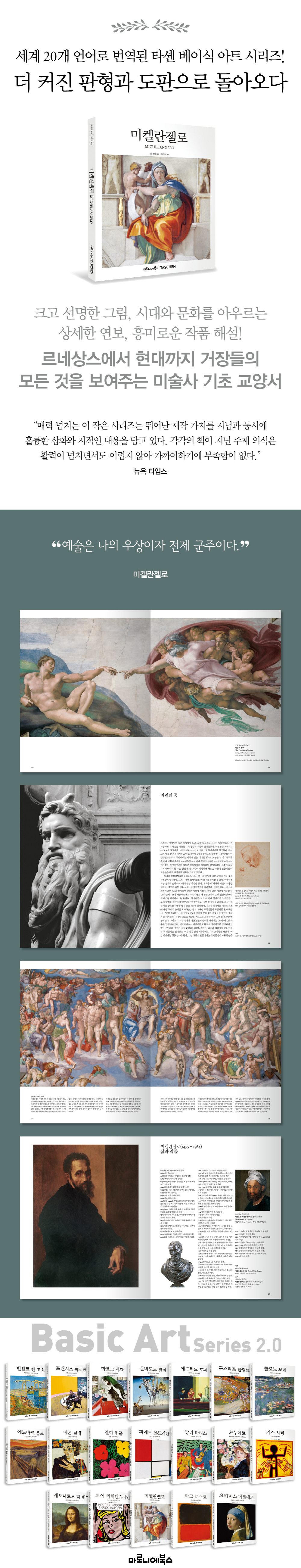 º£ÀÌ½Ä ¾ÆÆ® ½Ã¸®Áî´Â 1985³â ÇÇÄ«¼Ò ÀÛǰÁýÀ» ½ÃÀÛÀ¸·Î º£½ºÆ®¼¿·¯ ¾ÆÆ®ºÏ Ä÷º¼ÇÀ¸·Î °Åµì³µ´Ù. ±× ÀÌÈÄ °£°áÇÏ°í ¾ãÀº ÀÛ°¡º° µµ¼´Â 200¿© Á¾ÀÌ ³Ñ°Ô Á¦À۵Ǿú°í, 20¿© °³ ±¹¾î·Î Ãâ°£µÇ¾ú´Ù. ÀÌ ½Ã¸®Áî´Â ¶Ù¾î³ Á¦ÀÛ °¡Ä¡¸¦ Áö´Ô°ú µ¿½Ã¿¡ ÈǸ¢ÇÑ »ðÈ¿Í ÁöÀûÀÎ ³»¿ëÀ» ´ã°í ÀÖ´Ù. °¢°¢ÀÇ Ã¥ÀÌ Áö´Ñ ÁÖÁ¦ ÀǽÄÀº Ȱ·ÂÀÌ ³ÑÄ¡¸é¼µµ ¾î·ÆÁö ¾Ê¾Æ °¡±îÀÌÇϱ⿡ ºÎÁ·ÇÔÀÌ ¾ø´Ù. 2005³â ù Çѱ¹¾îÆÇÀ» Ãâ°£ÇÑ ÀÌÈÄ 15³â ¸¸¿¡ »õ·Ó°Ô ÀçÃâ°£µÇ¾ú´Ù. À̹ø º£ÀÌ½Ä ¾ÆÆ® 2.0 ½Ã¸®Áî´Â Àüº¸´Ù ´õ Ä¿Áø ÆÇÇü°ú µµÆÇÀ¸·Î µ¶Àڵ鿡°Ô º¸´Ù »ý»ýÇÑ ÀÛǰ À̹ÌÁö¸¦ Àü´ÞÇÑ´Ù.