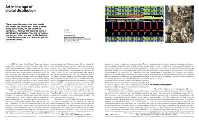 ¾Ëºê·¹È÷Æ® µÚ·¯¿Í 16¼¼±â Àμâ ÇÁ·¹½º¿¡ ´ëÇÑ ±×ÀÇ »ç¿ë¿¡¼ºÎÅÍ 1960³â´ë ¹é³²ÁØÀÇ ºñµð¿À ½ÇÇè¿¡ À̸£±â±îÁö ¾ÆÆ¼½ºÆ®´Â Ç×»ó »õ·Î¿î ¹Ìµð¾î ±â¼úÀÇ ¾ó¸®¾î´ðÅÍ¿´´Ù. ´ëÁßÀûÀÎ ¸Åü·Î¼ ÀÎÅͳÝÀÇ µîÀåÀº »õ·Î¿î Ä¿¹Â´ÏÄÉÀÌ¼Ç ±â¼ú-À¥, CCTV °¨½Ã Ä«¸Þ¶ó, ÈÞ´ëÆù, ÈÞ´ë¿ë ÄÄÇ»ÅÍ, GPSÀåÄ¡ µî-ÀÇ ¹®ÈÀû, »çȸÀû, ¹ÌÀû °¡´É¼ºÀ» ¿¬±¸Çϱ⠽ÃÀÛÇÏ´Â ±Û·Î¹ú ¾ÆÆ® ¿îµ¿ÀÇ °áÁ¤Ã¼ÀÌ´Ù. ±¸Ã¼ÀûÀÎ ¾ÆÆ®ÀÇ ¿ª»çÀû ¿îµ¿À¸·Î¼ ´º¹Ìµð¾î¿¡ ÁýÁßÇϰí ÀÖ´Â º»¼´Â ±â¼ú, ÁÖÁ¦Àû ³»¿ë, °³³äÀû ¹æ¹ý µîÀ» ޱ¸Çϰí ÀÖ´Ù. ´º¹Ìµð¾î ¾ÆÆ®´Â Á¾Á¾ »ç»ó°ú Ç¥ÇöÀÇ ÀûÀý¼º, Çù·Â, °øÀ¯¿Í °ü·ÃµÇ¸ç ¾ÆÀ̵§Æ¼Æ¼, »ó¾÷È, ÇÁ¶óÀ̹ö½Ã, ´ëÁß ºÎºÐ¿¡¼ÀÇ ¹®Á¦¸¦ ÀÚÁÖ ´Ù·ç°í ÀÖ´Ù. ¸¹Àº ´º¹Ìµð¾î ¾ÆÆ¼½ºÆ®´Â ¾ÆÆ®ÀÇ ¿ª»çÀû ¼±Á¶¿¡ ´ëÇÏ¿© ÃæºÐÈ÷ ÀνÄÇϰí ÀÖÀ¸¸ç, ´Ù´Ù, ÆË ¾ÆÆ®, ÆÛÆ÷¸Õ½º ¾ÆÆ®, Ç÷°¼½º µîÀ» ¾ð±ÞÇϰí ÀÖ´Ù.