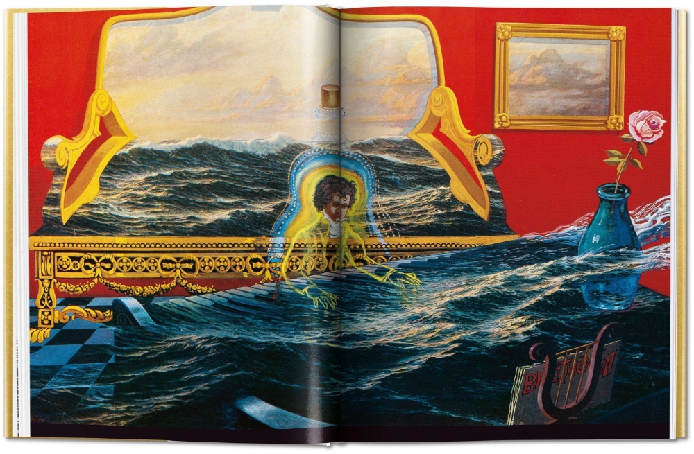 Bursting with imagery, the book features more than 140 illustrations by Dalí. Many of these are appropriated artworks, including various classical nudes, all of them reconstructed with suitably Surrealist, provocative touches, like Jean-François Millet¡¯s The Angelus, one of Dalí¡¯s favorite points of reference over the decades. Dalí also included what is now considered one of the greatest works from his late ¡°Nuclear Mystic¡± phase, The Sacrament of the Last Supper (1955), which sets the iconic biblical scene in a translucent dodecahedron-shaped space before a Catalonian coastal landscape. Dalí was by this stage a devout Catholic, simultaneously captivated by science, optical illusion, and the atomic age.