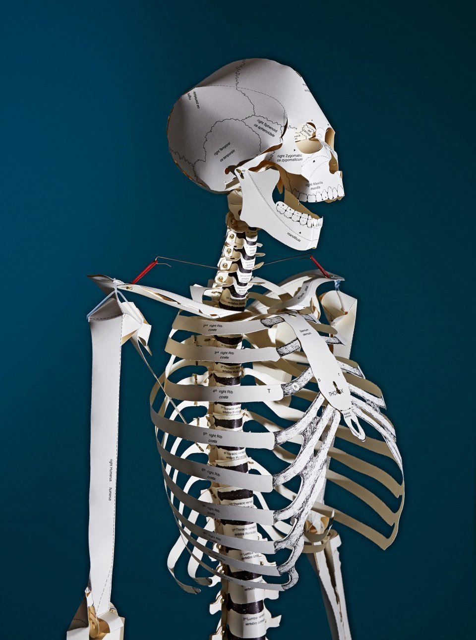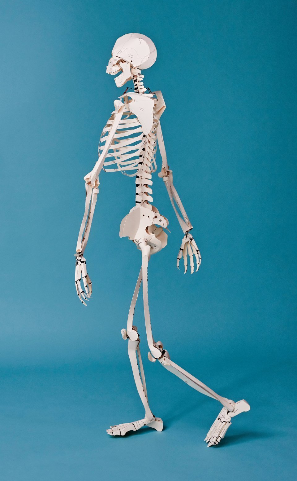 A model of the human skeleton made entirely of foldable cardboard