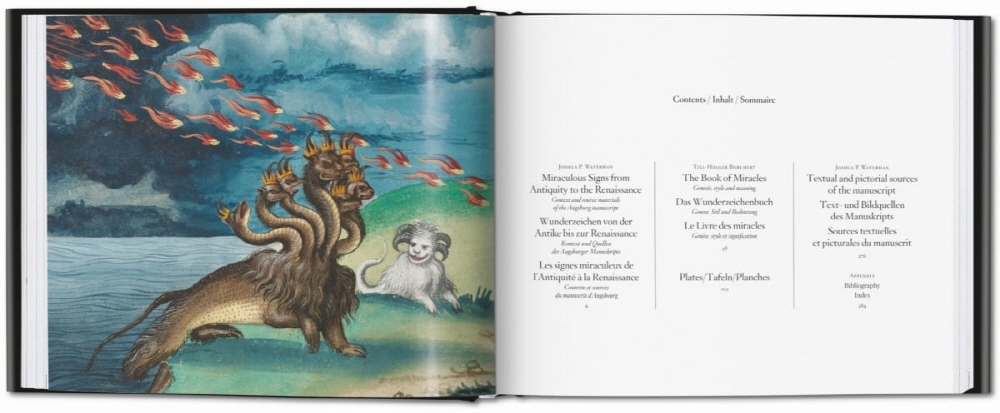 The Book of Miracles first surfaced only a few years ago and is one of the most spectacular discoveries in the field of Renaissance art. The near-complete illustrated manuscript, created in Augsburg around 1550, is composed of 169 pages of large-format illustrations in gouache and watercolor, depicting wondrous and often eerie phenomena.