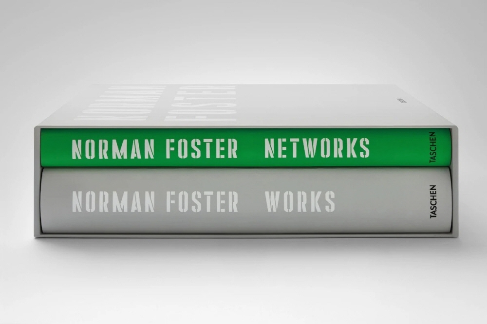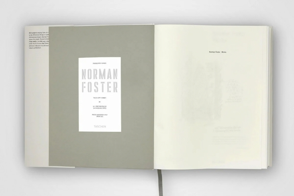 Also available as an Art Edition of 300 copies with a 1-meter-wide signed print of a drawing by Norman Foster, picturing the upcoming multifunctional community and business center InnHub in La Punt, Switzerland. The two volumes of this edition are collected in a custom-designed slipcase that folds into a book stand.