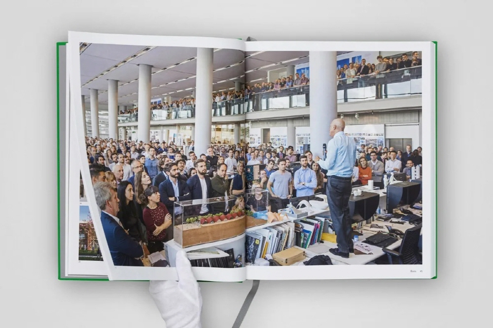 Art Edition of 300 copies with a 1-meter-wide signed print of a drawing by Norman Foster, picturing the upcoming multifunctional community and business center InnHub in La Punt, Switzerland. The two volumes of this edition are collected in a custom-designed slipcase that folds into a book stand.